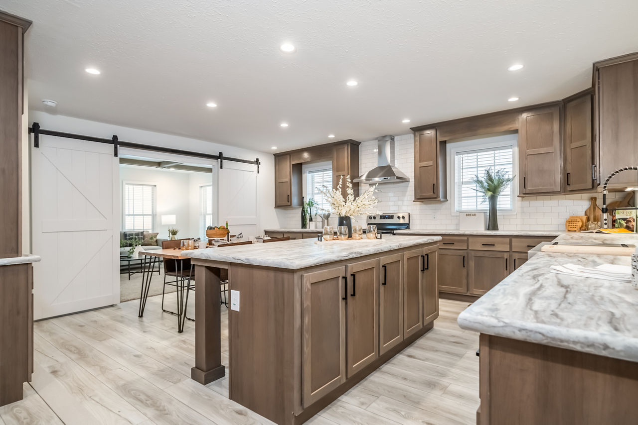 The Winston from Redman Homes is full of features you do not want to miss out on. With 2,183 square feet, this home has three bedrooms and two bathrooms. This huge, manufactured home includes a den and a spacious laundry room. Let’s get into its contemporary details!