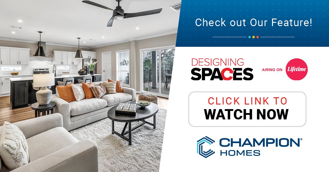 “We’re thrilled to be featured on Designing Spaces, a show dedicated to high quality, beautifully designed homes like the ones we build for hardworking Americans every day,” said Champion Homes President and CEO Tim Larson. “Champion Homes has an uncompromising commitment to providing our customers with high-value homes and an exceptional purchase experience. We’re looking forward to connecting with new homebuyers across the country through this exciting television segment.”
